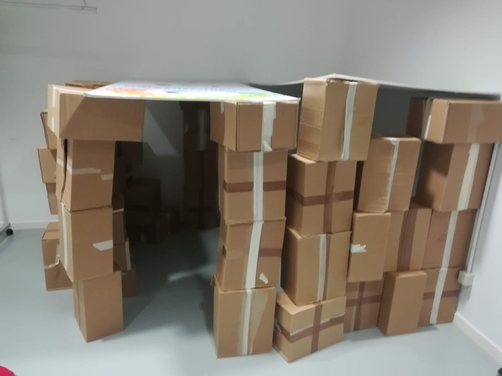 Los niños y niñas de 4 años desarrollaron la creatividad y su imaginación con cajas. Tenían que construir entre todos diferentes cosas. Algunos hicieron escorpiones, otros princesas, otros coches,...y para finalizar una casa grandísima en la que todos cabían.